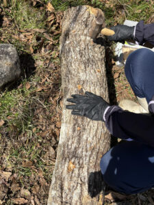 - 原木シイタケの駒打ち4月に入ったけど、原木シイタケの駒打ちをした。48本のホダギに約750個の種駒。二夏越した来年の秋からシイタケは生えてくるよ。